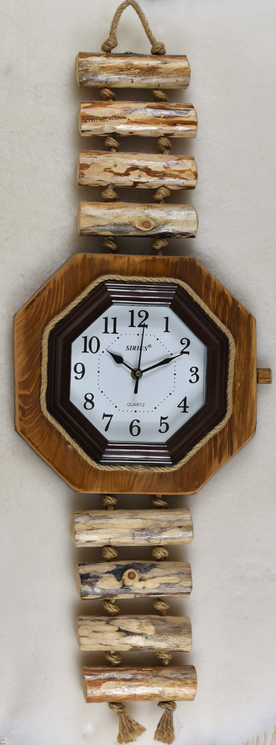 A stylish clock handmade from wood and string. Stylowy zegar wykonany ręcznie z drewna i sznura.